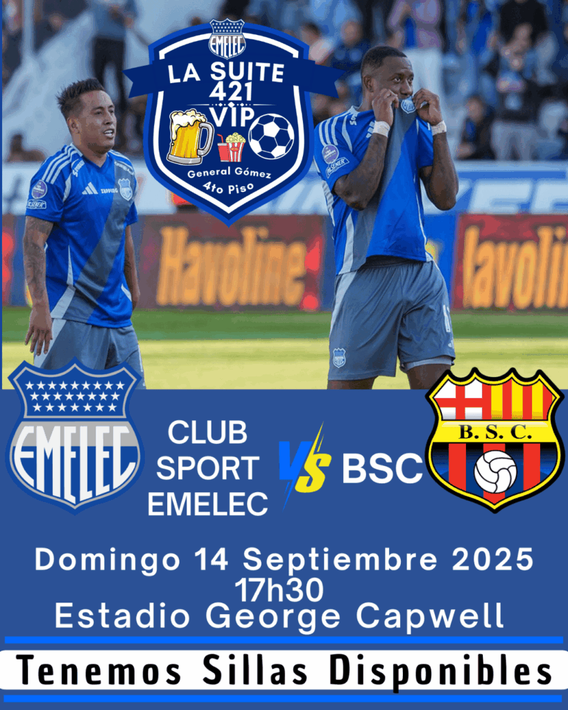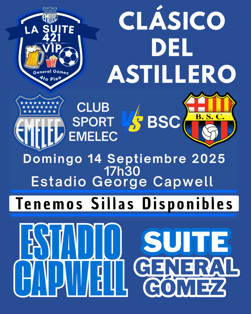 Disfruta del Clásico del Astillero este Domingo 14 de Septiembre en la mejor Suite del Estadio George Capwell del Club Sport Emelec Vive al Máximo el Clásico el Partido más Importante del Año en la mejor Suite Partido #EMELEC 🆚...
